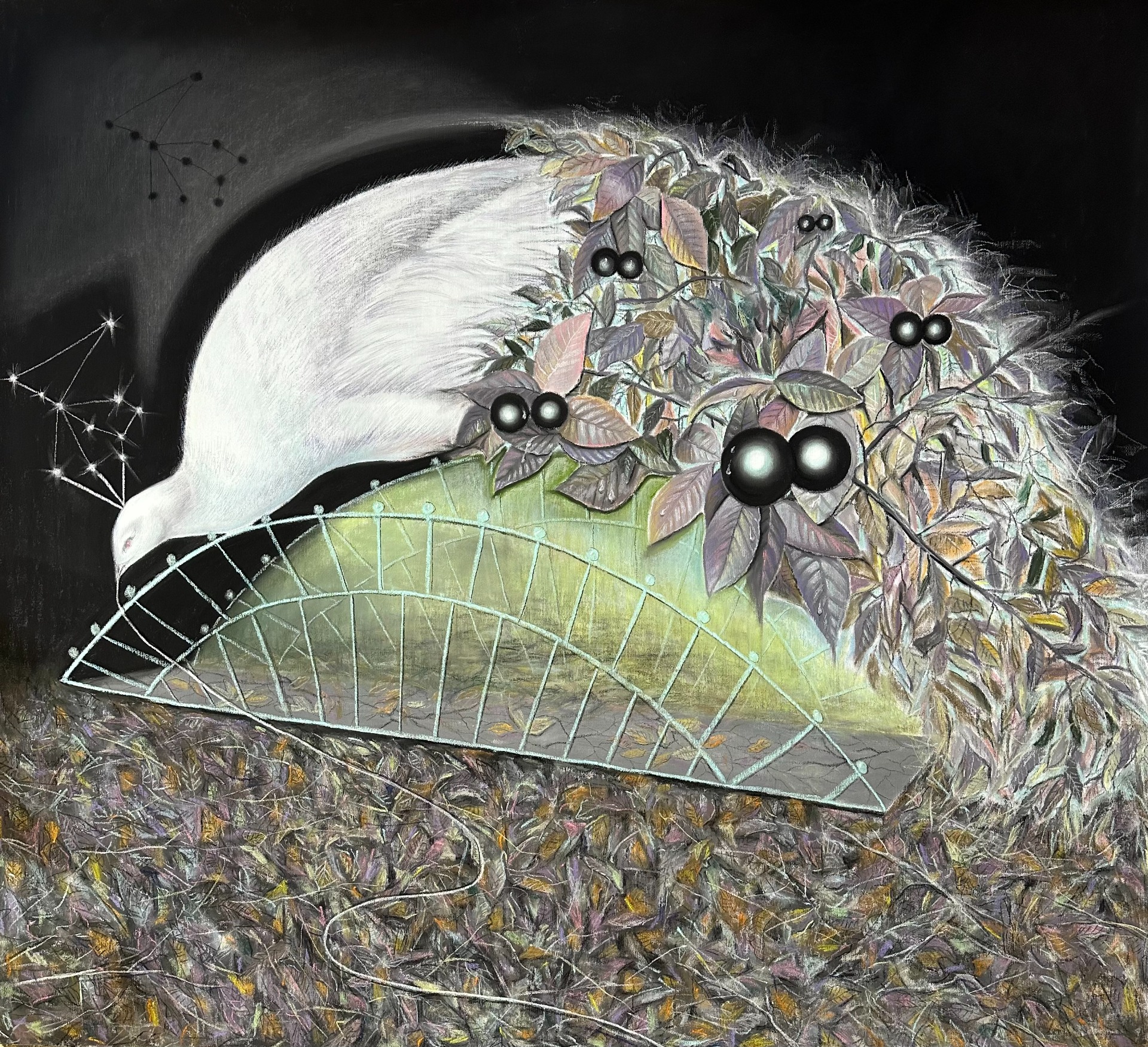 Strážci noci, 2024, 165x130 cm, suchý pastel na plátně