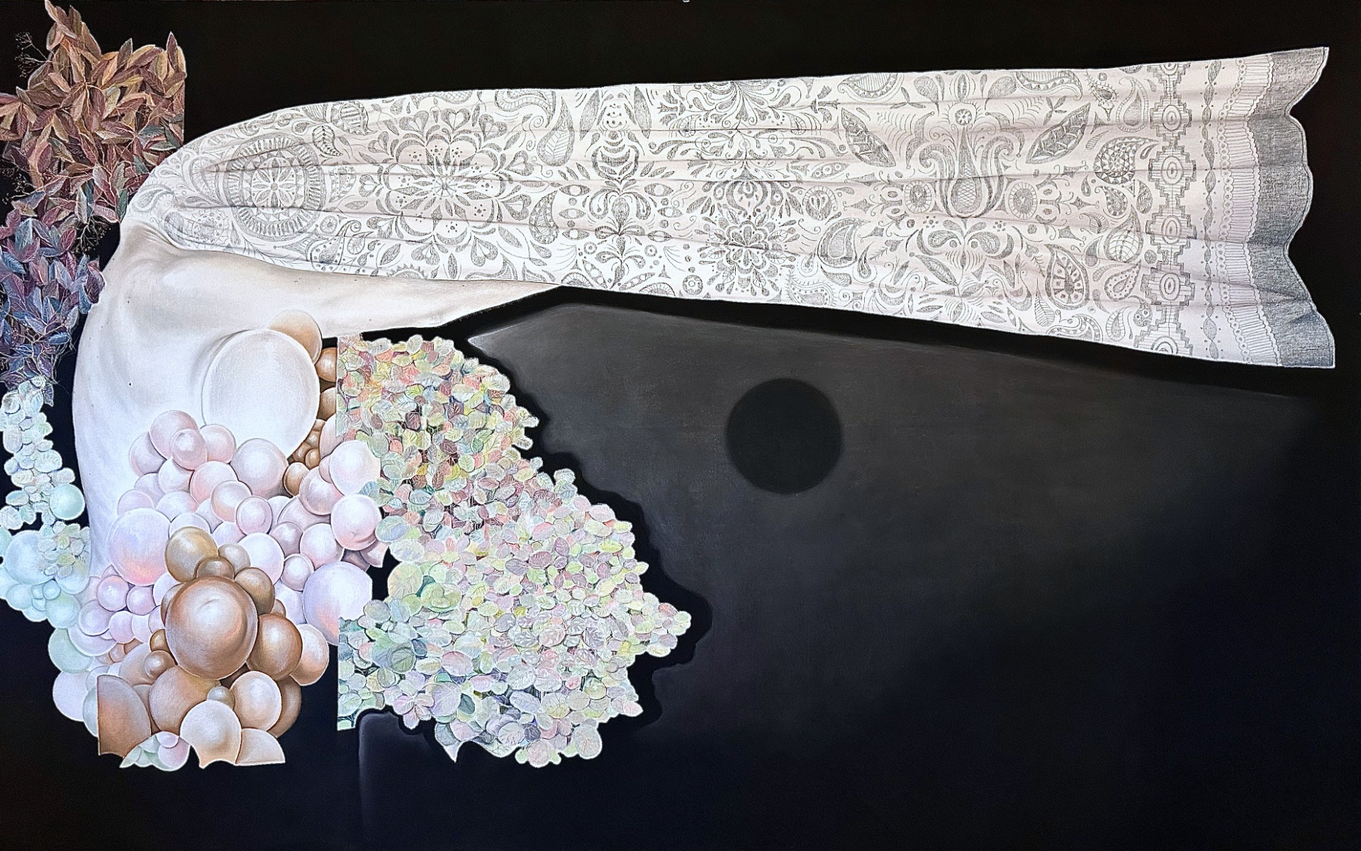 Měsíc na stole, 2025, 164x170 cm, suchý pastel na plátně