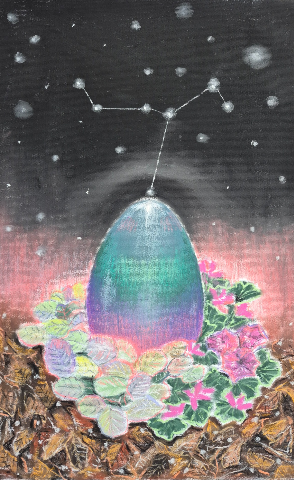 Holubí vejce, 2025, 29,5x45 cm, suchý pastel na plátně