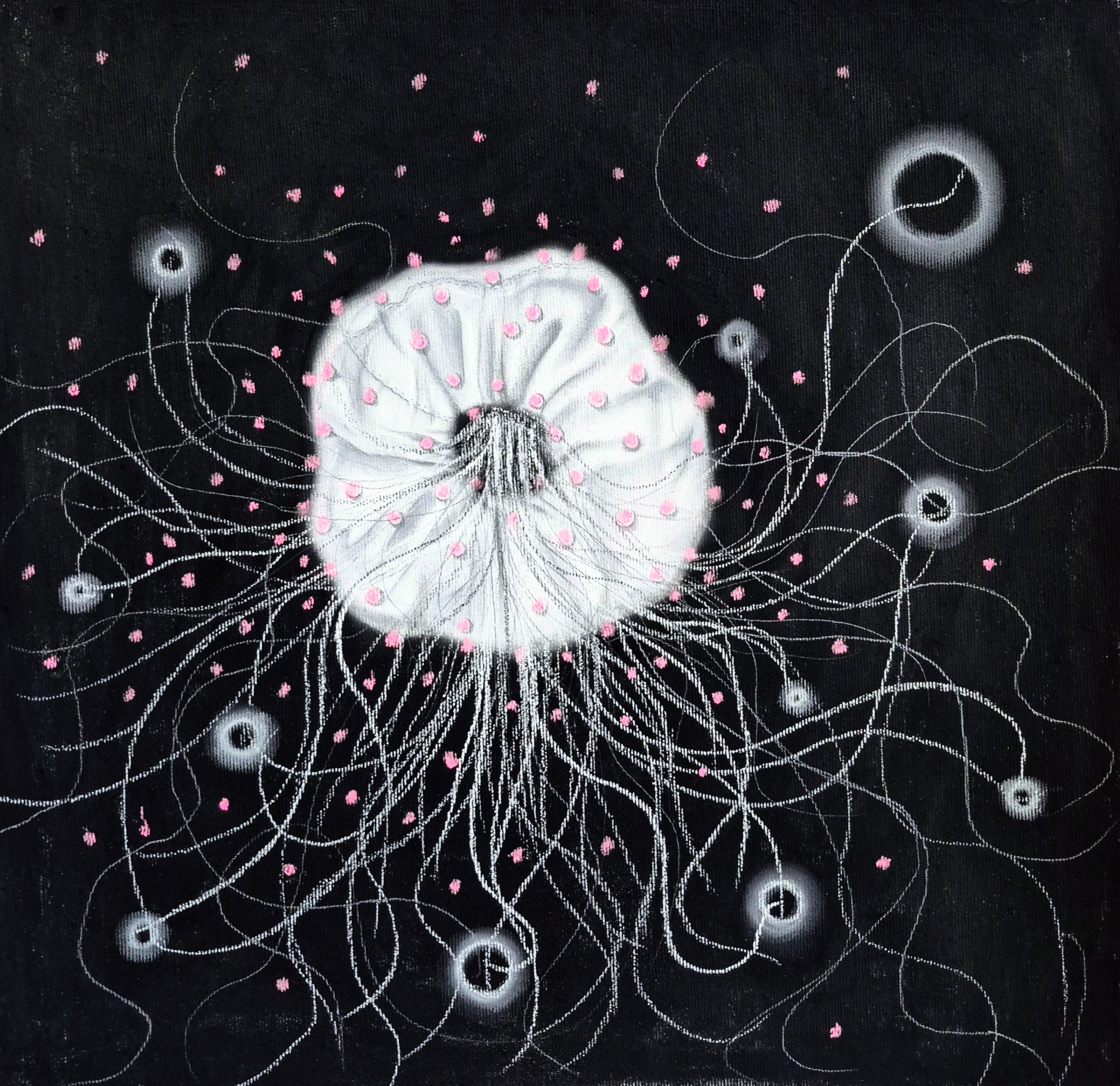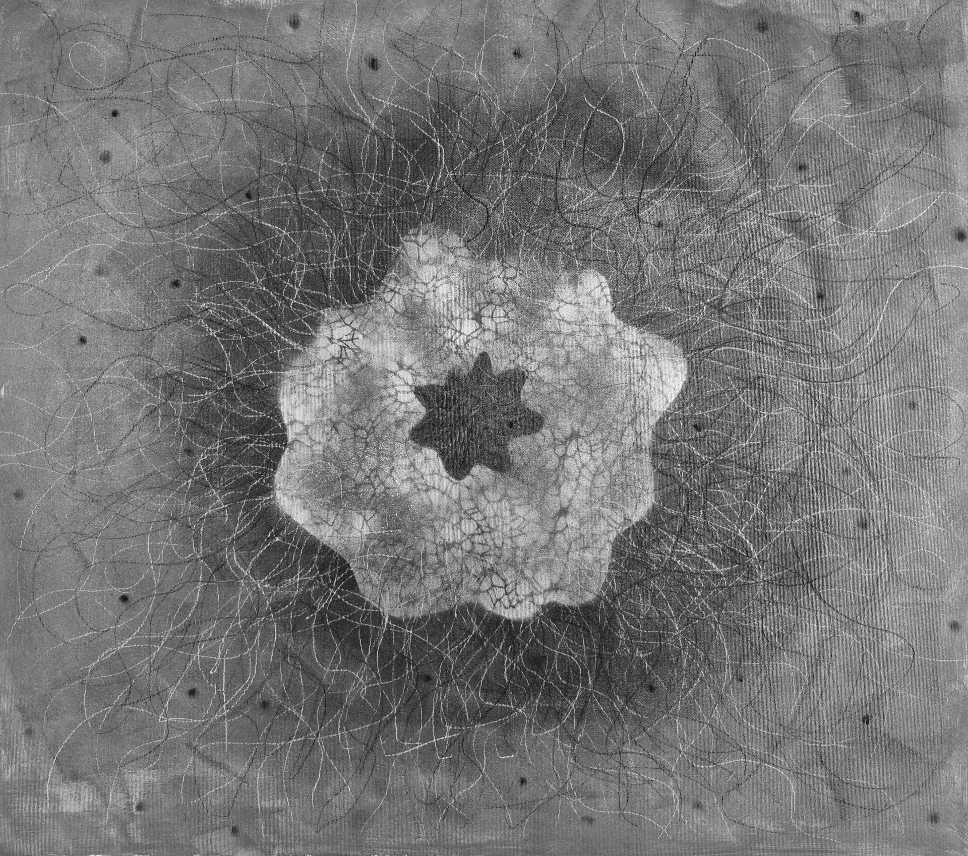 Černé díry, 2025, 43x43 cm, suchý pastel na plátně