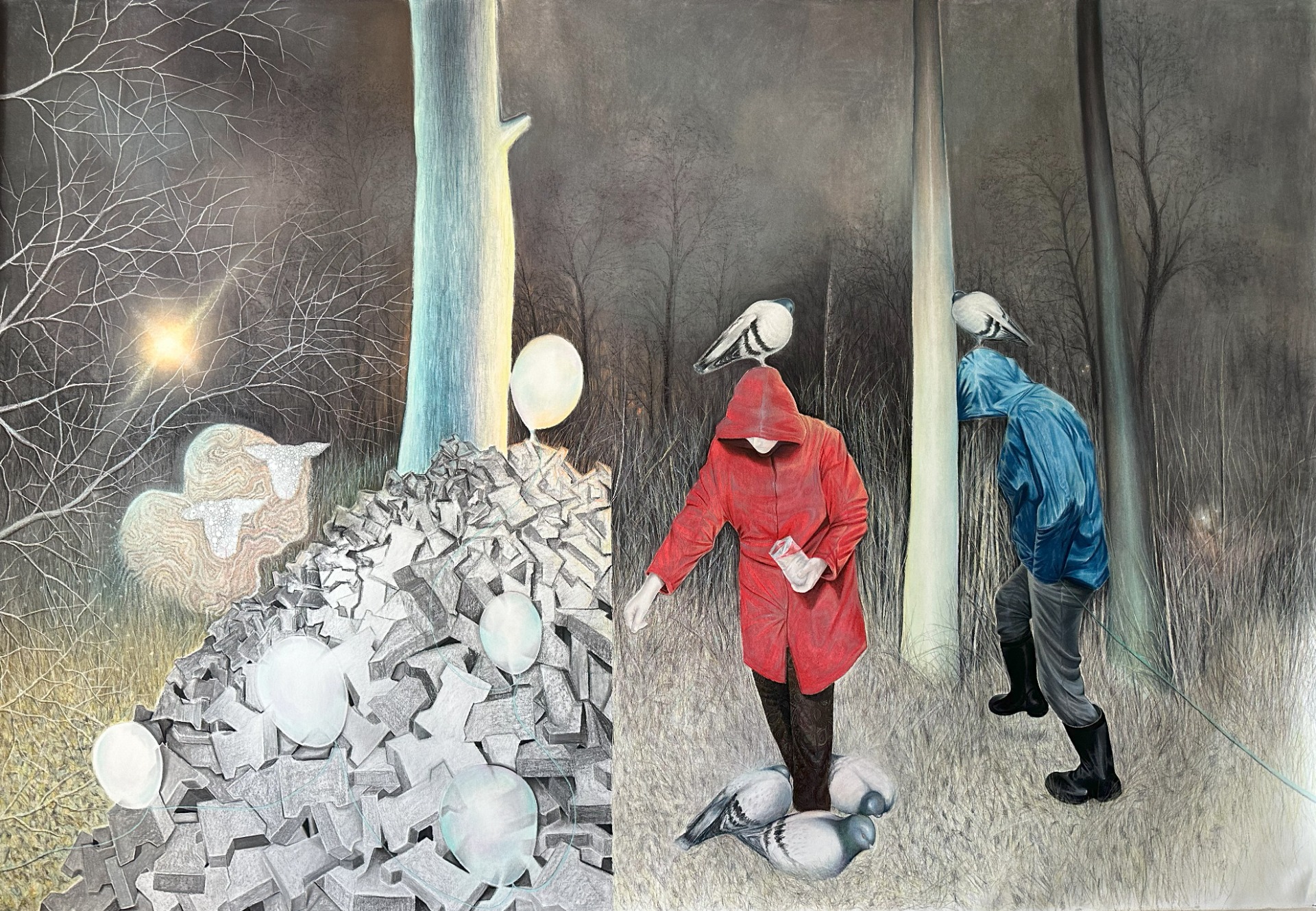 Rustling, 2024, 236 x 165 cm, soft pastel and micro pencil and progresso on canvas