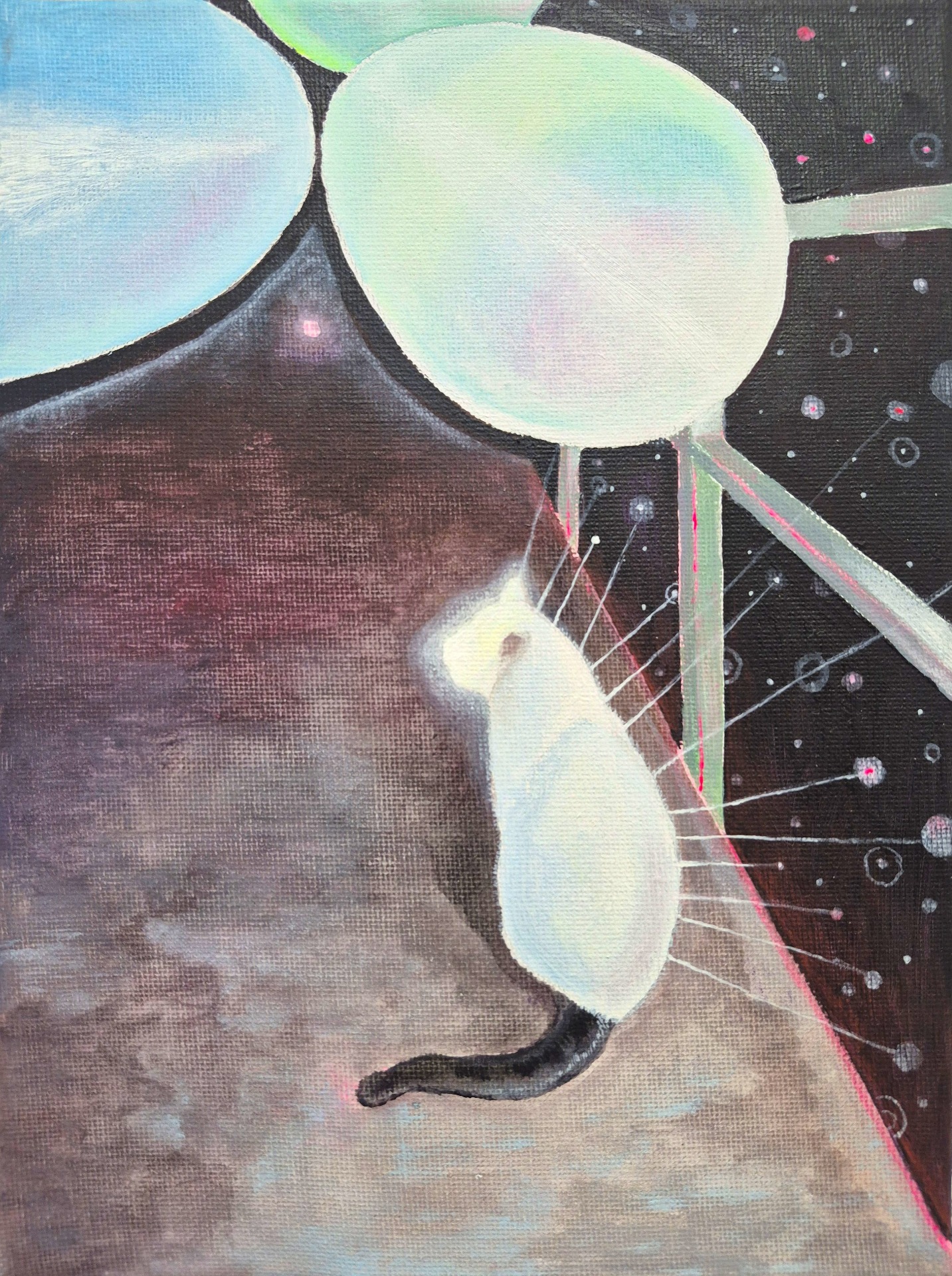 Tulačka po hvězdách, 2025, 17,5x24 cm, akryl na plátně