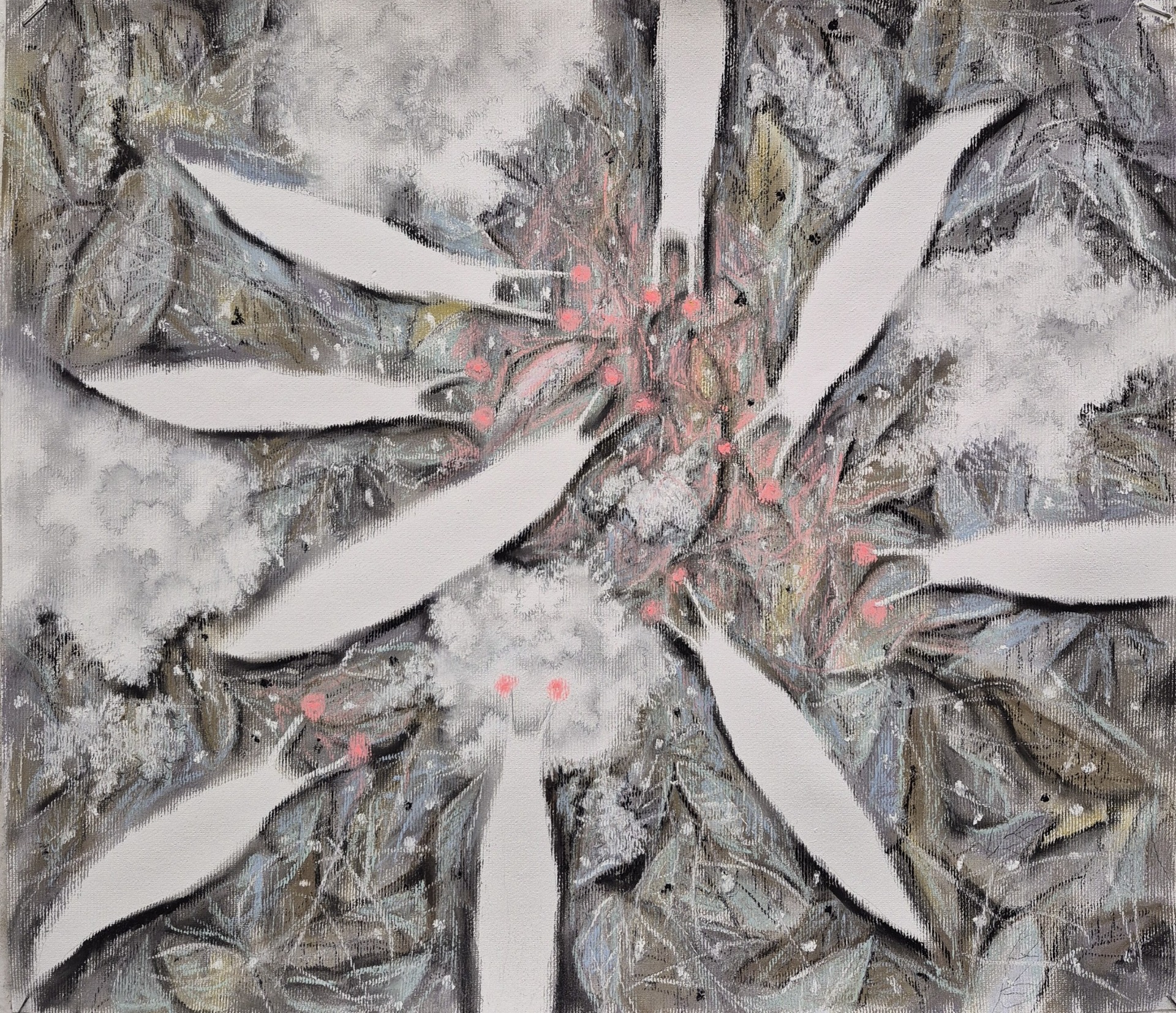 Zimomřivci, 2025, 40x35 cm, suchý pastel na plátně