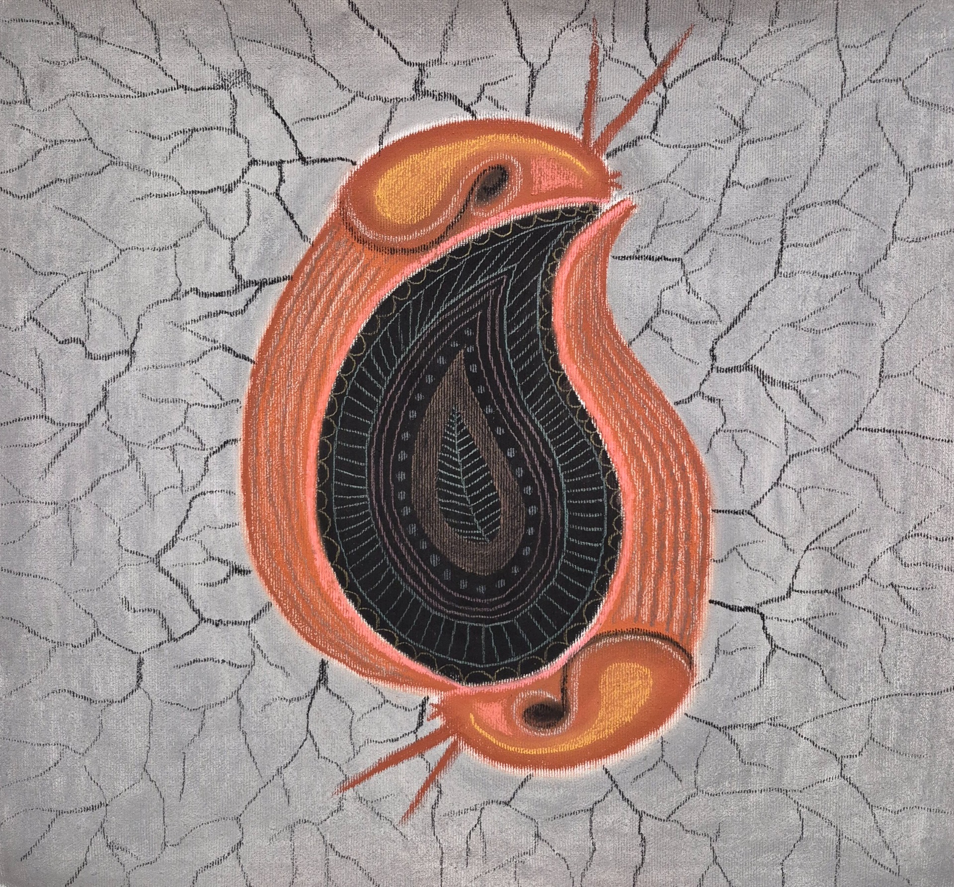 Sebedestrukce, 2025, 35x30 cm, suchý pastel na plátně