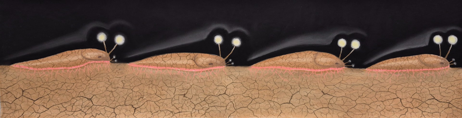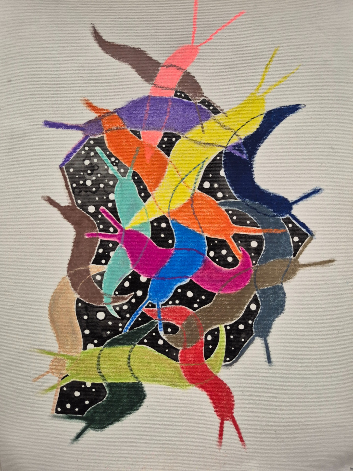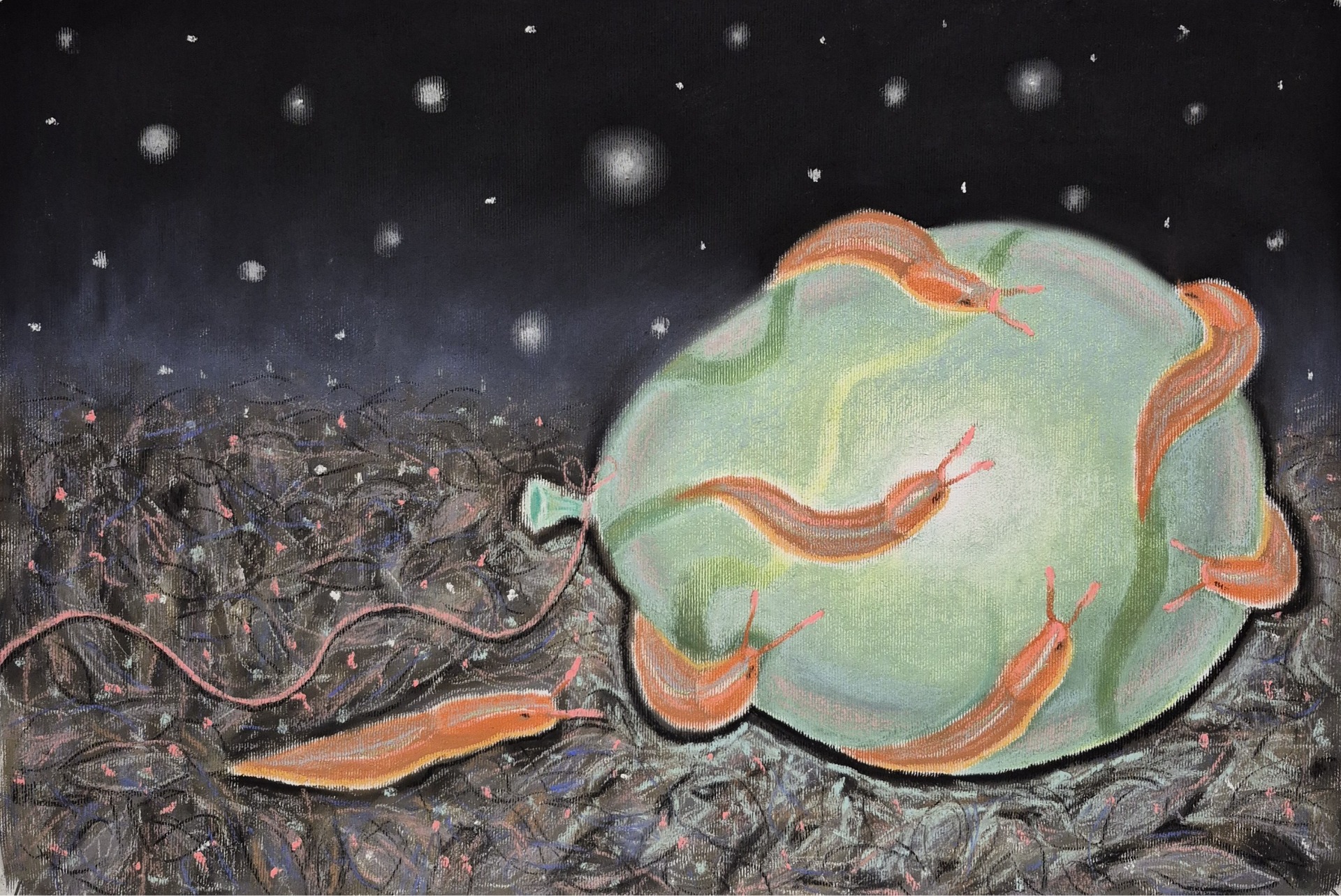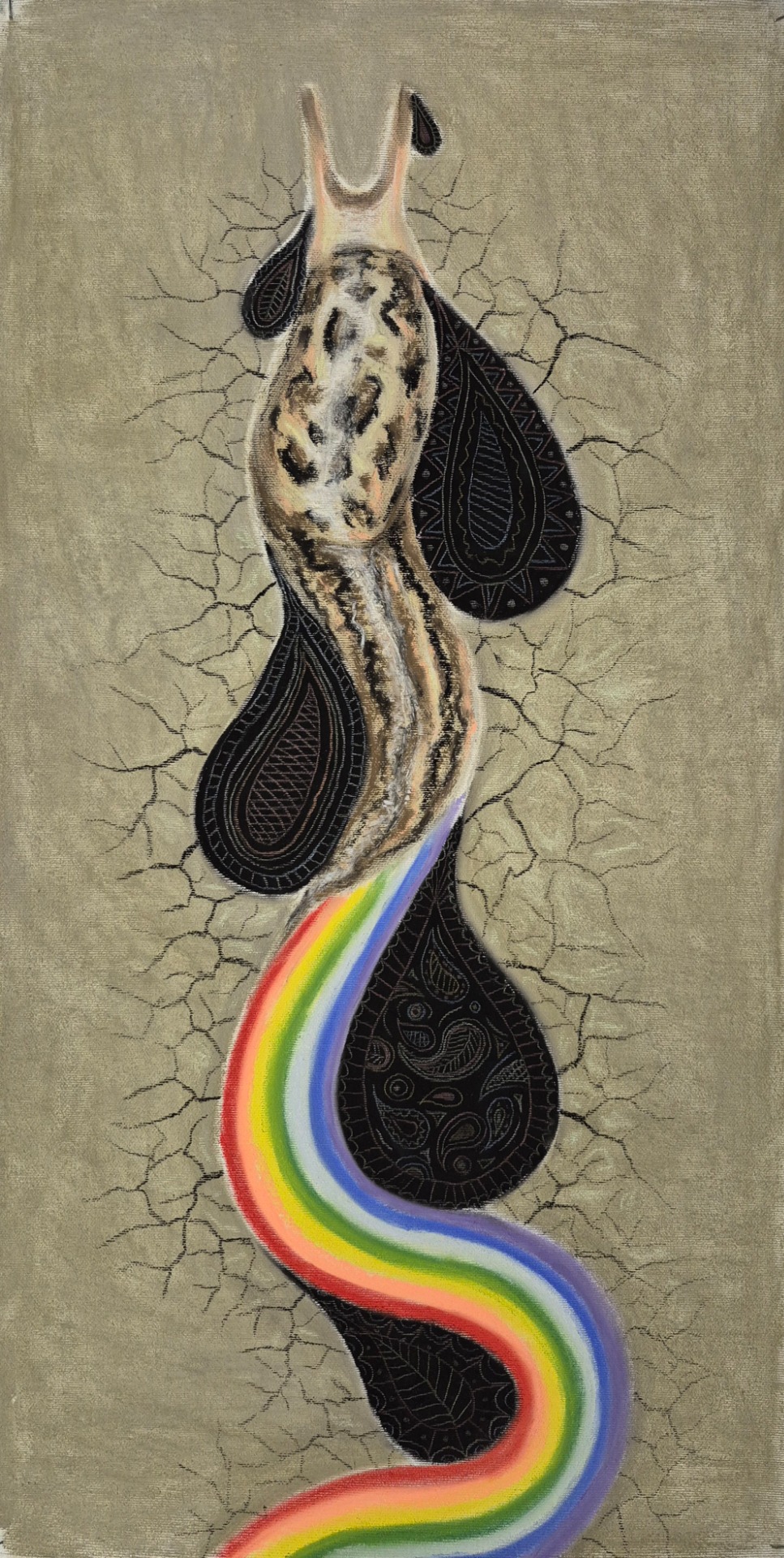 Digitální slimák, 2025, 16cm, 26cm, 20cm, 15,5cm, 35cm, 42 cm, suchý pastel na plátně