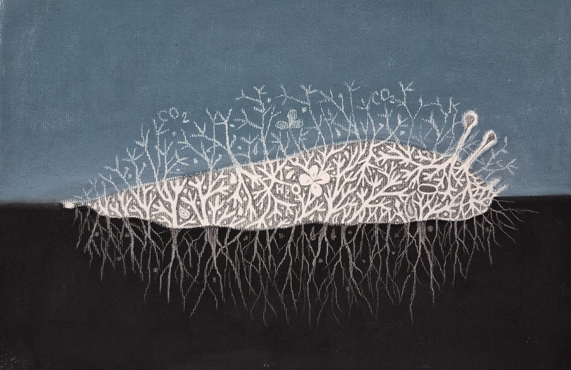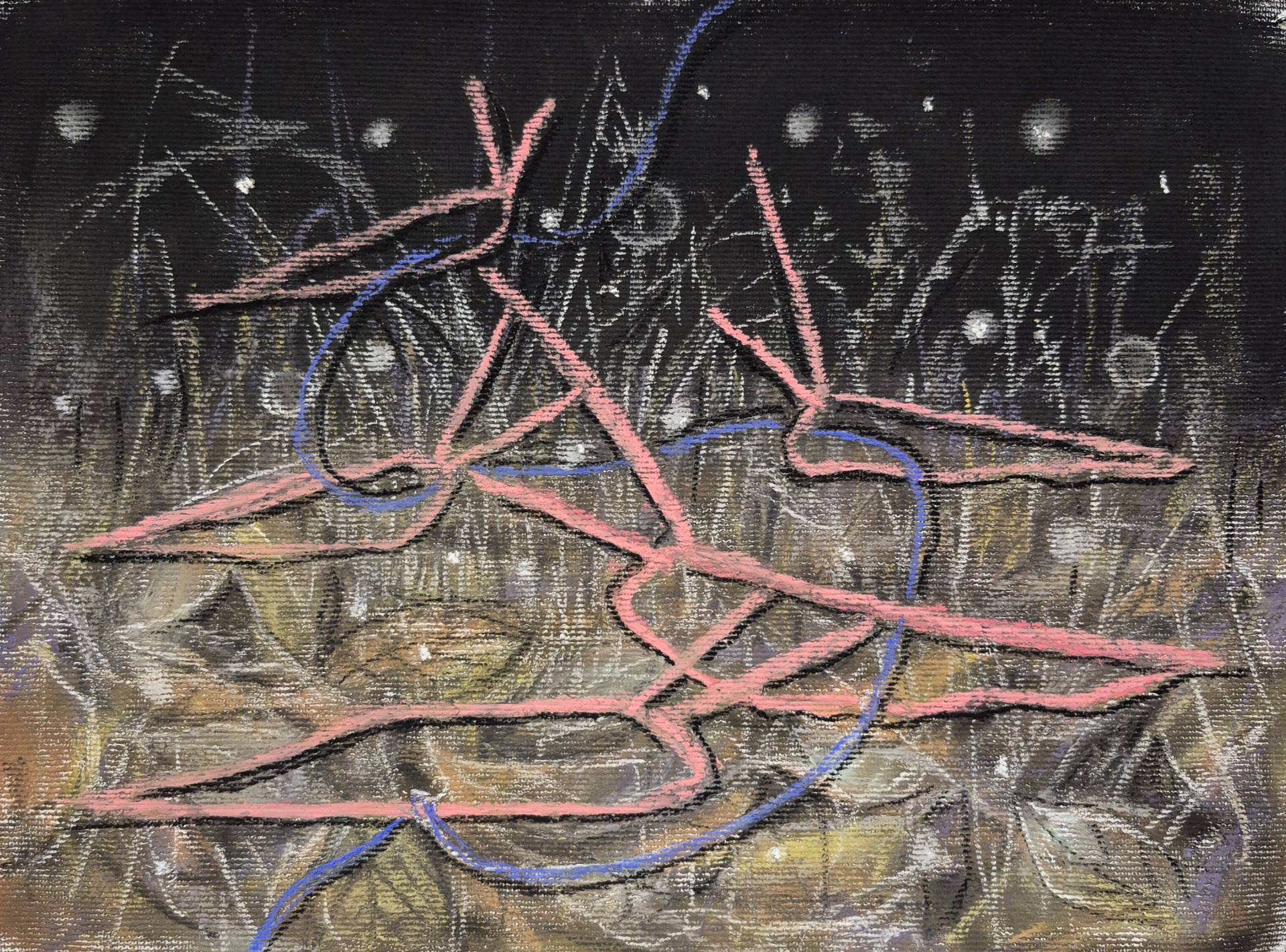 Průsečíky biodiverzit, 2025, 28x38 cm, suchý pastel na plátně