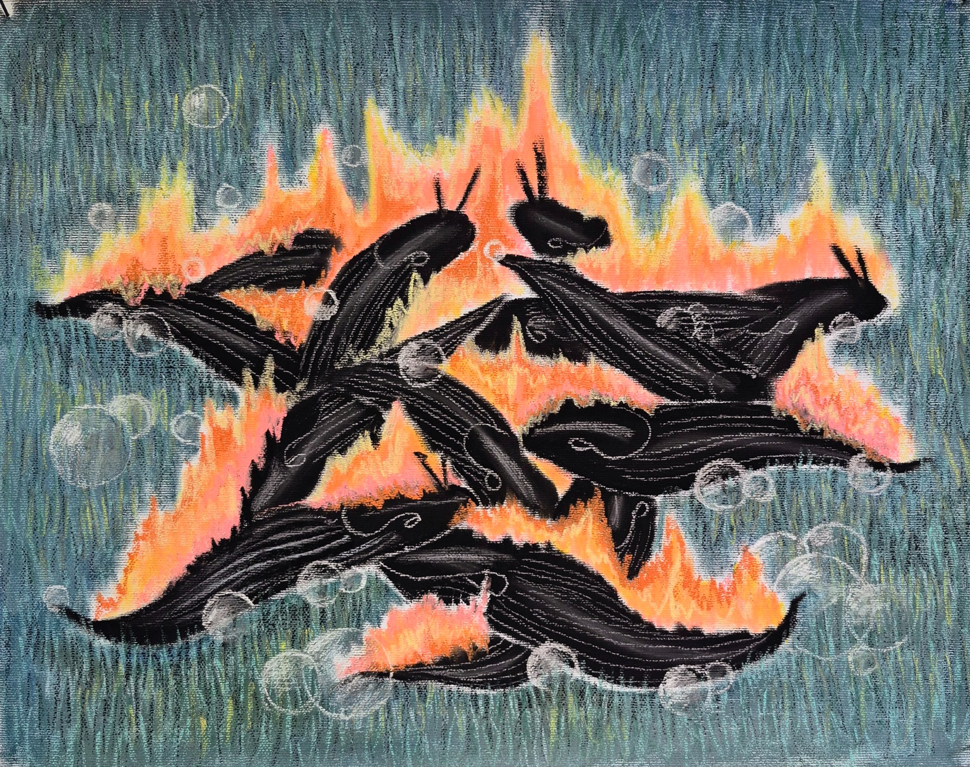 Vyhořelá společnost, 2025, 39x31 cm, suchý pastel na plátně