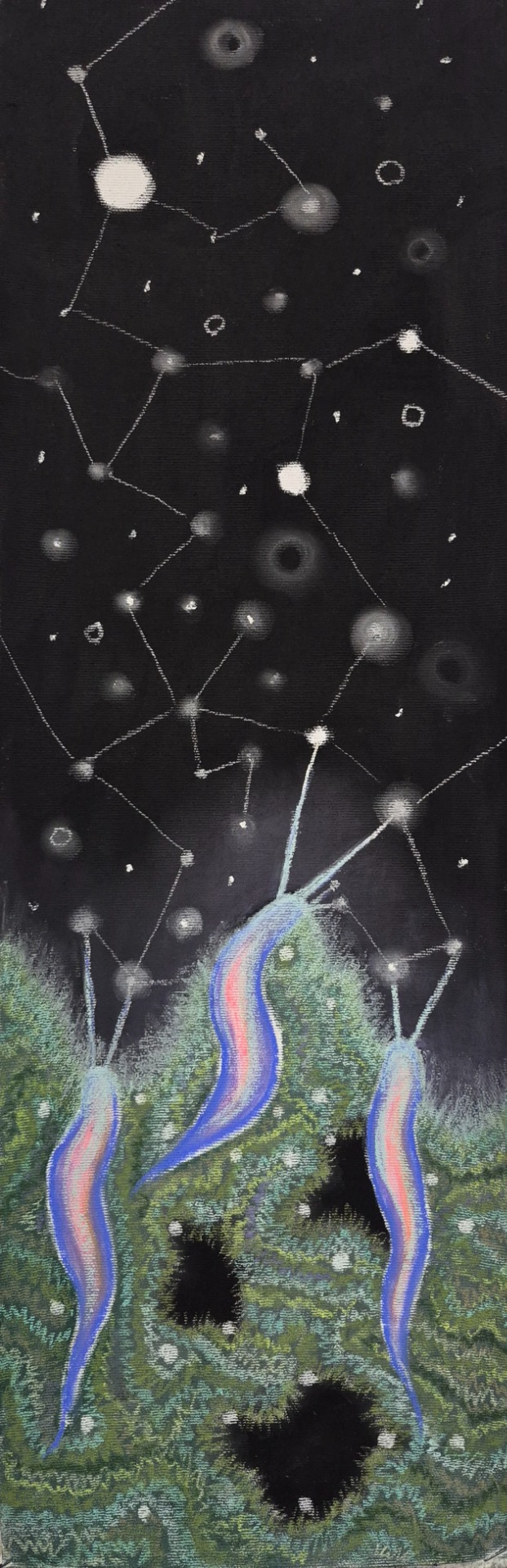 Hvězdáři, 2025, 20x65 cm, suchý pastel na plátně