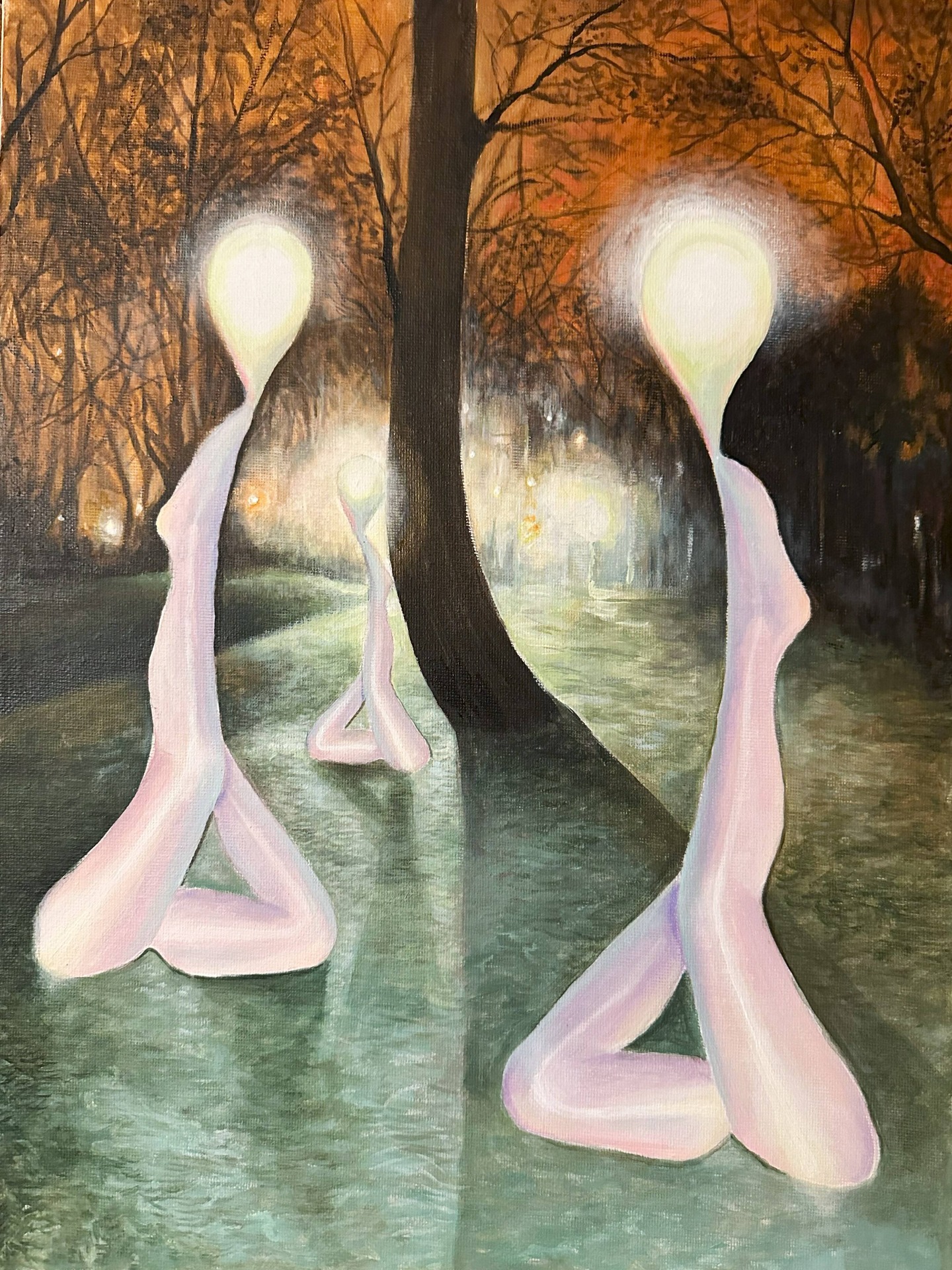 Bludičky, 2025, 30x40 cm, akryl na plátně