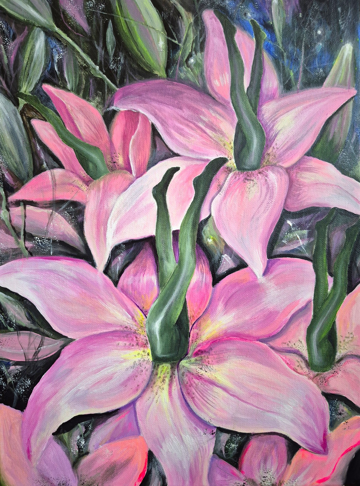 Lilie, 2025, 30x40 cm, akryl na plátně