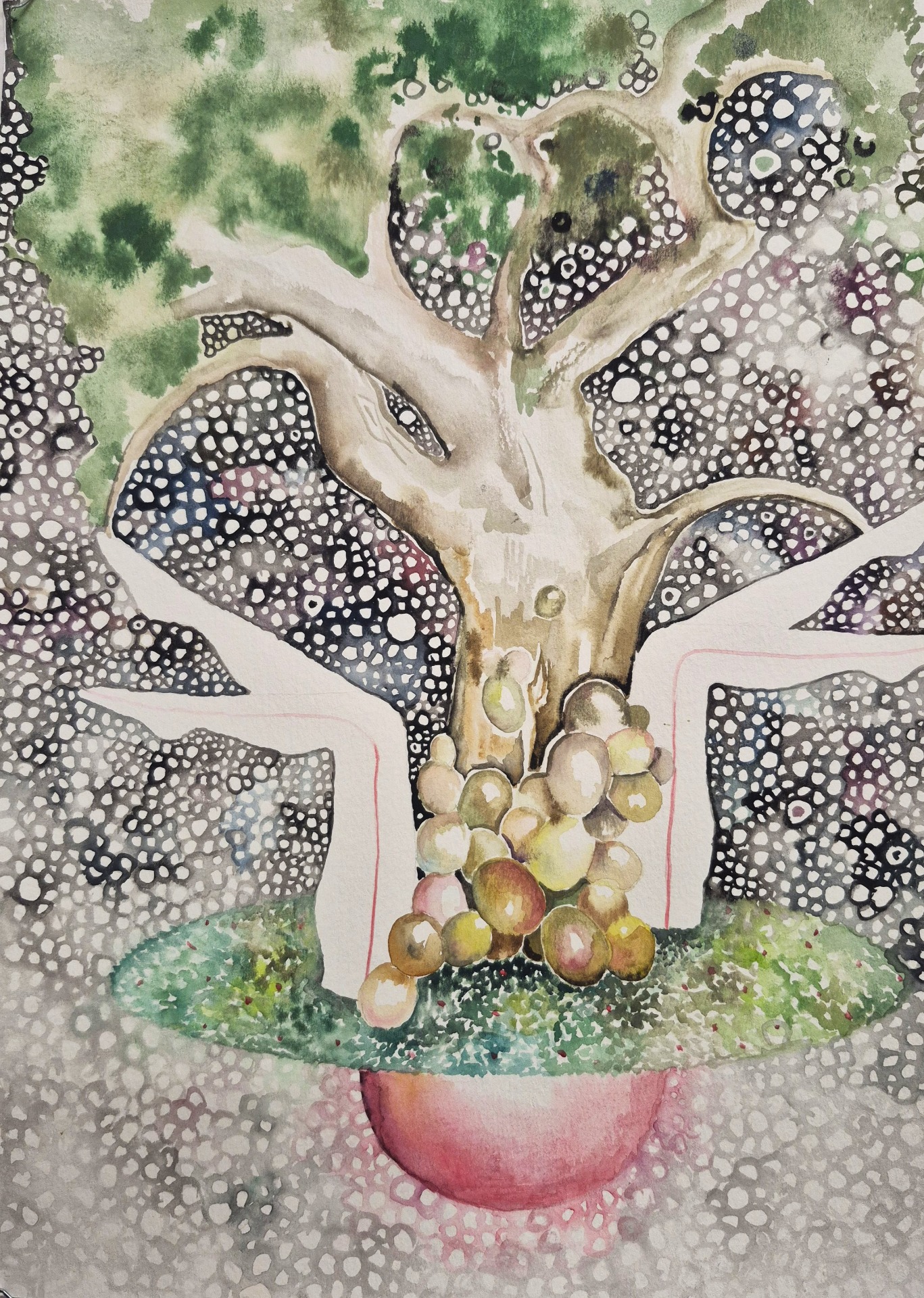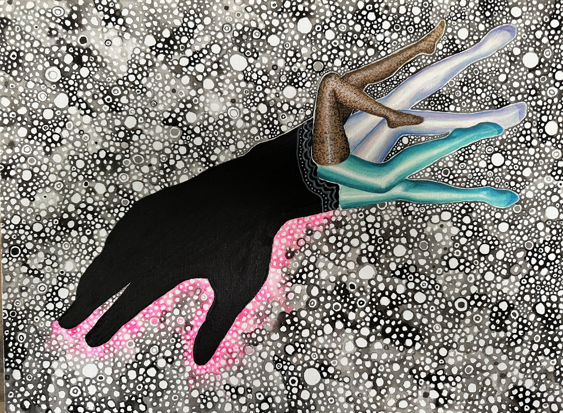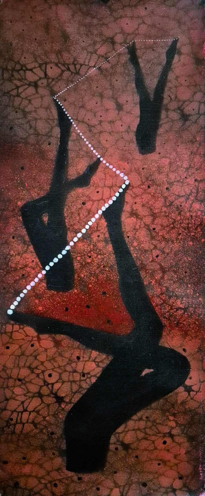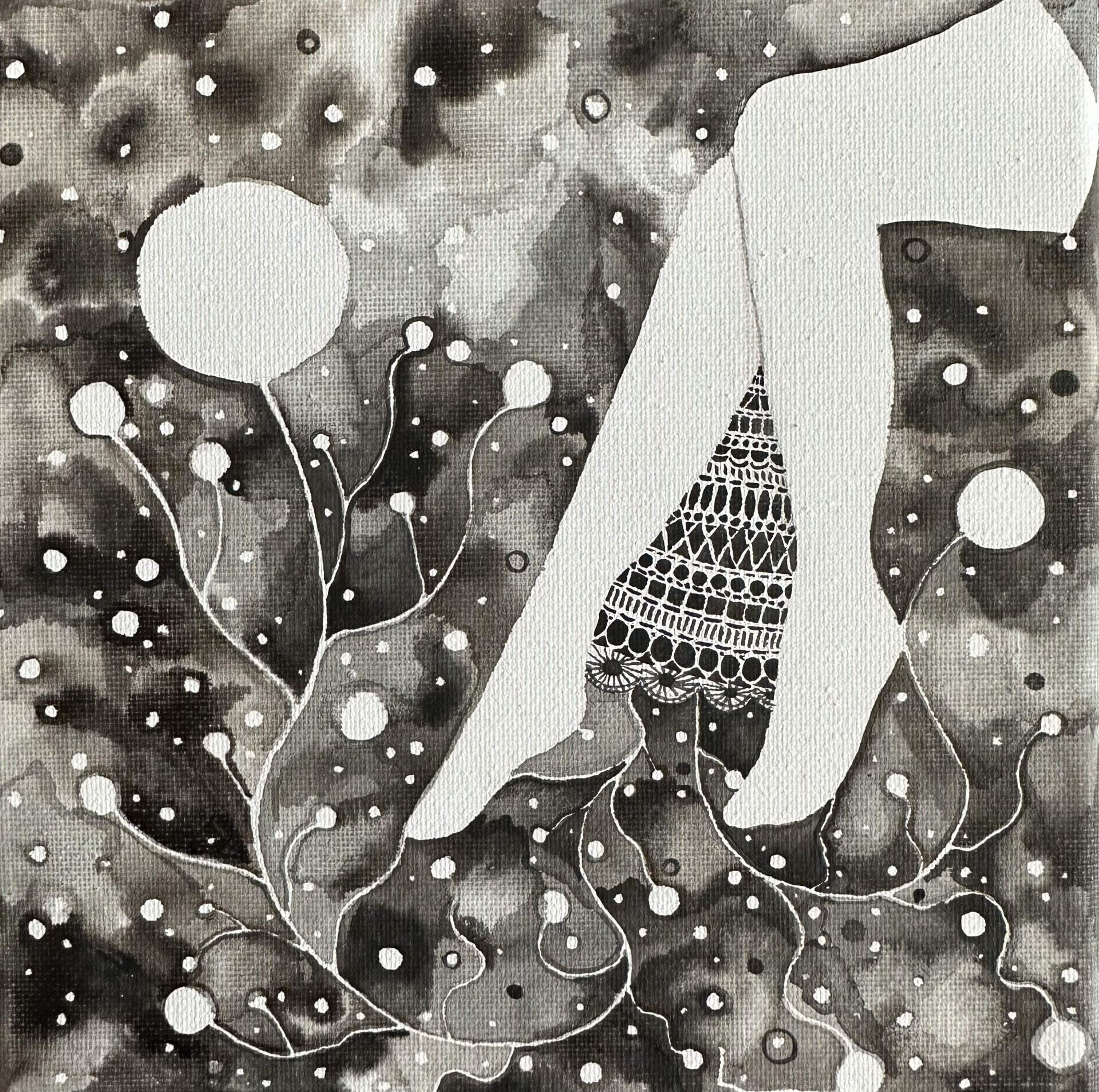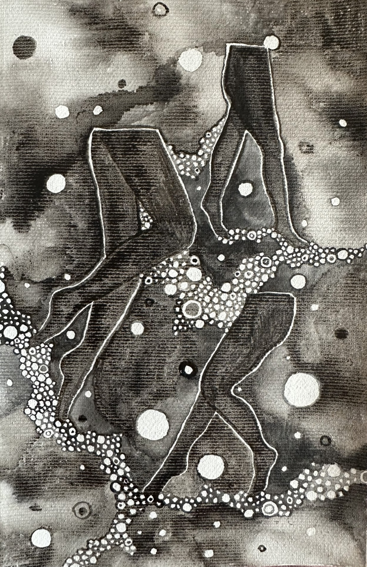 Dotyk, 2025, 32x24 cm, akryl a tuš na plátně
