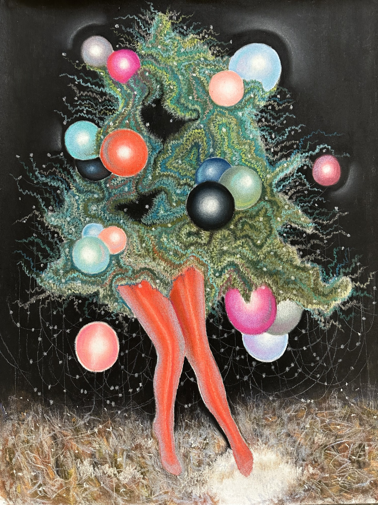 Merry Christmas, 2025, 50x69 cm, suchý pastel na plátně