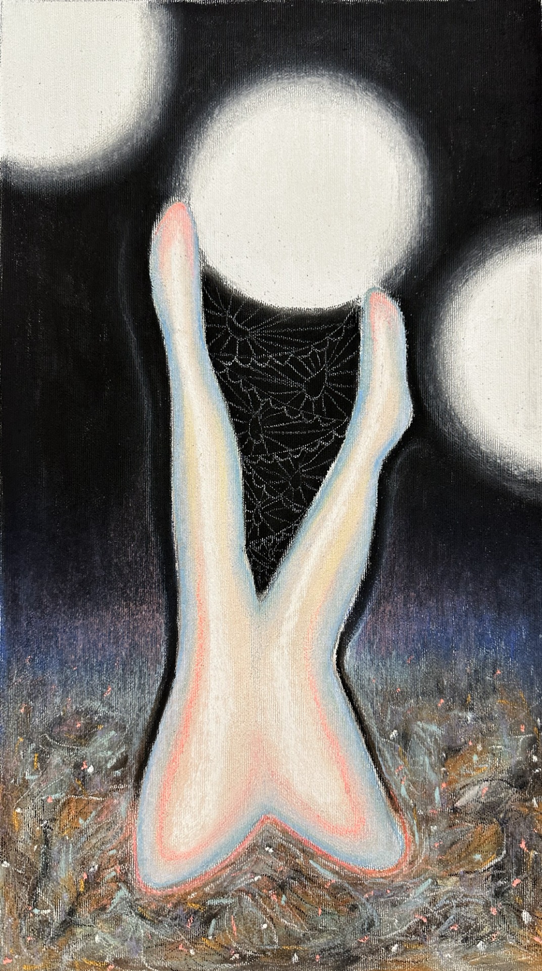 Úplněk, 2025, 25x45 cm, suchý pastel na plátně